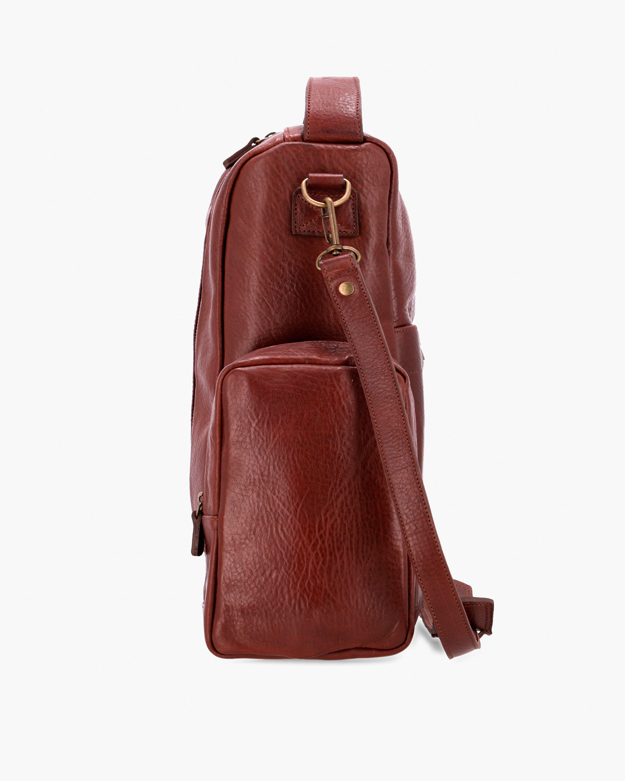 Elegante y práctico, hecho de cuero vacuno con cierres de bronce viejo. Ideal para llevar tu mate a todos lados. Espacio para termo, con sujetador de cuero y abrojo para que quede bien fijo y no se mueva.