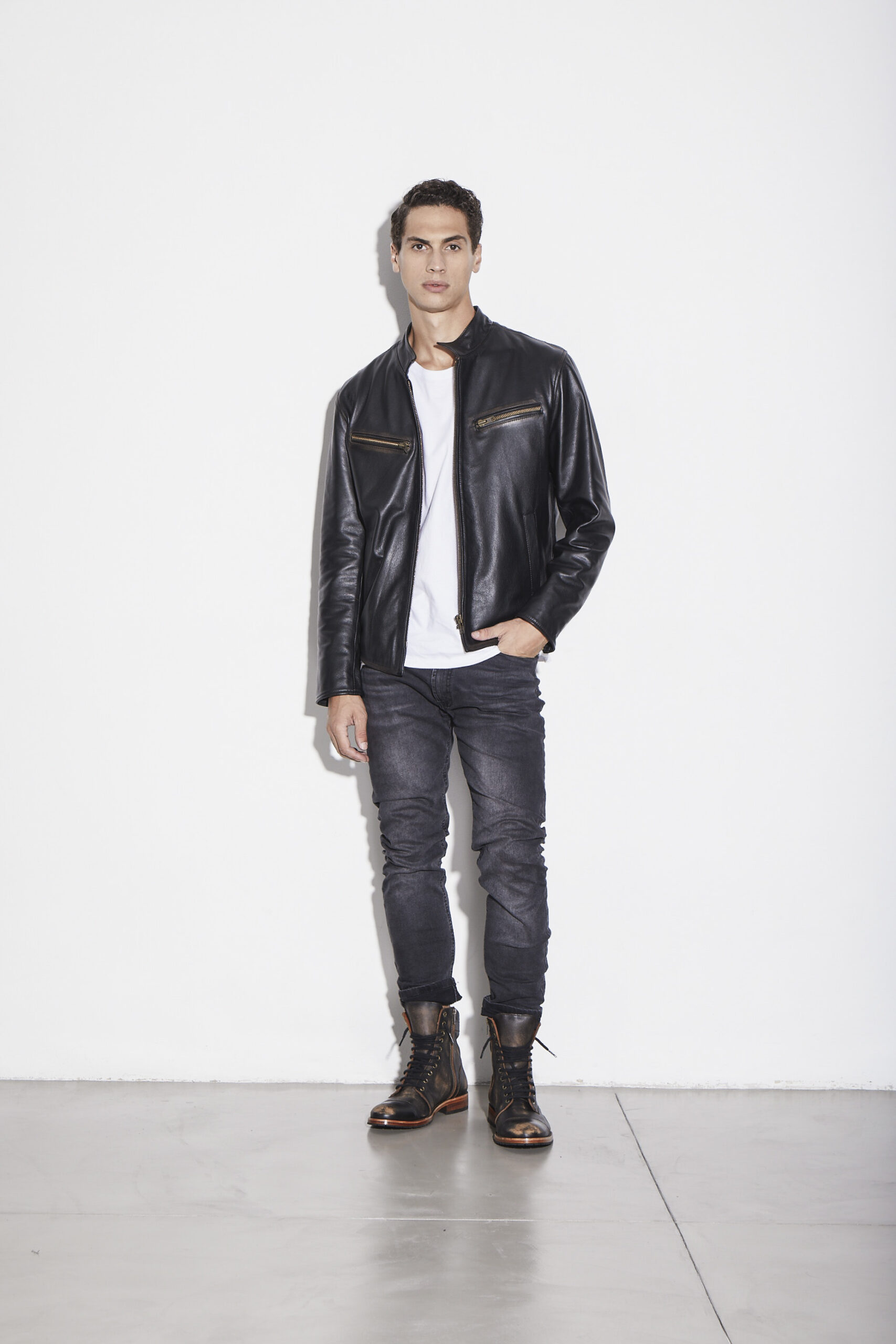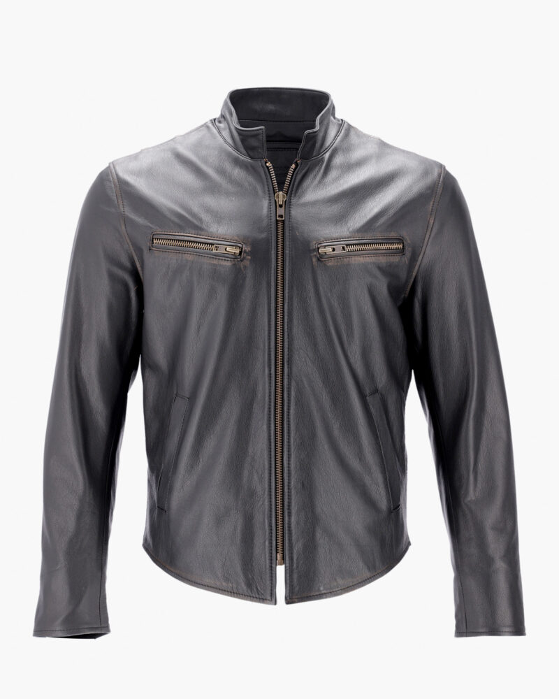 Campera de confección artesanal en cuero vacuno 100% legítimo. Diseño clásico con detalles en bronce viejo, cuello mao. Posee bolsillo interno. Bolsillos y puños con cierres, interior completamente forrado en microfibra gamuzada