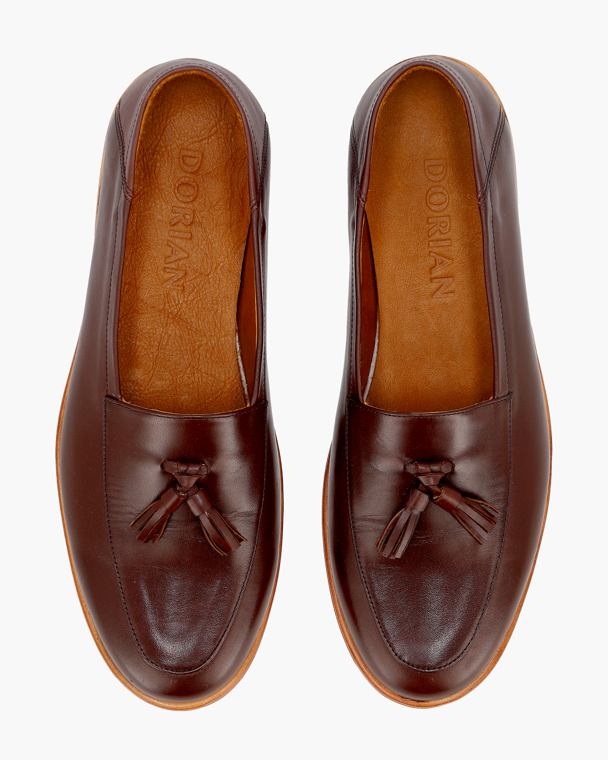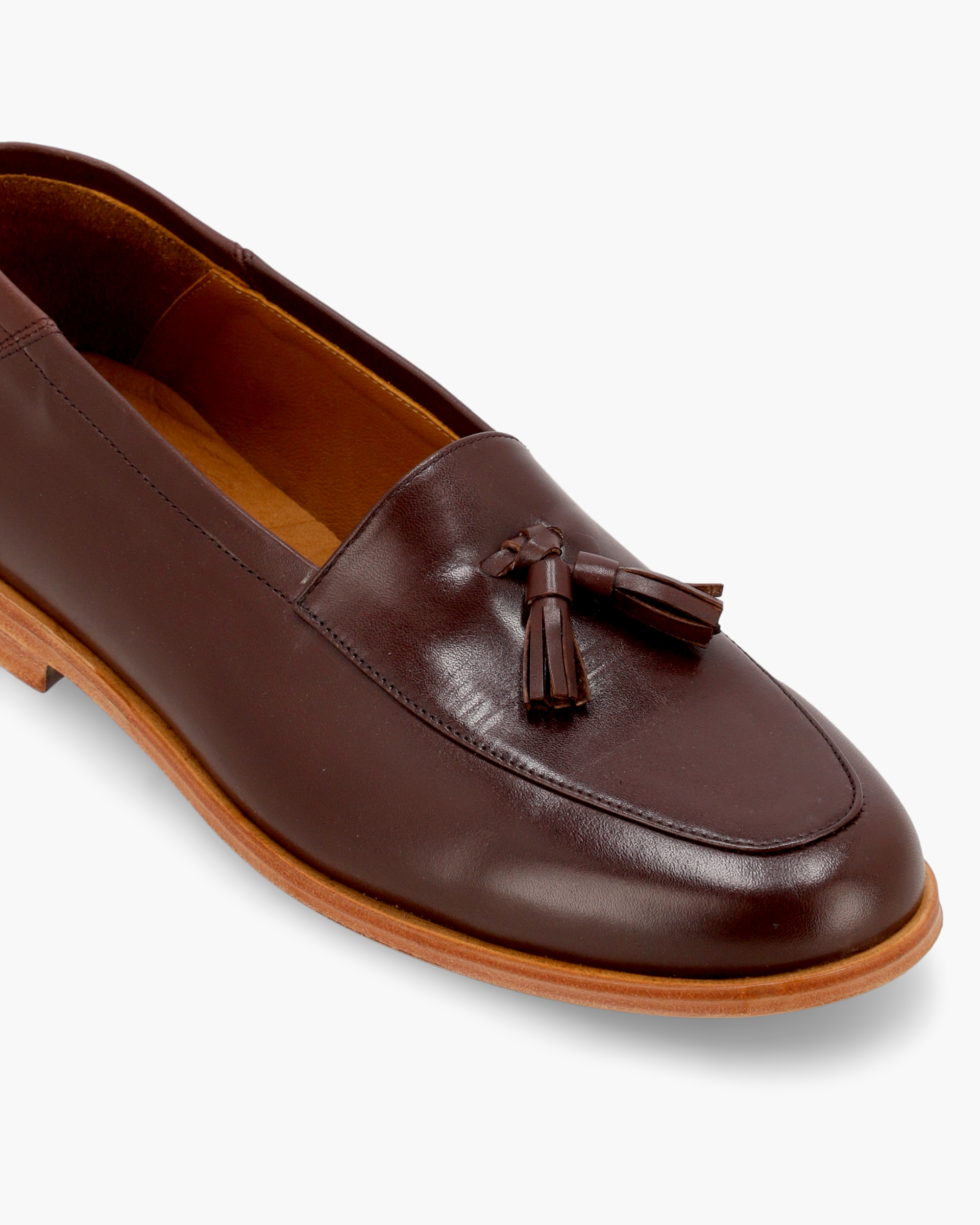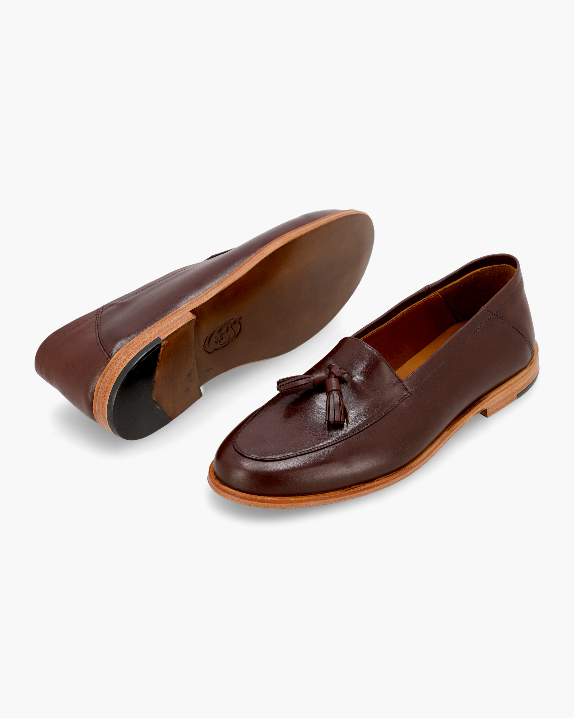 Mocasines de estilo clásico confeccionados artesanalmente en cuero vacuno legítimo.