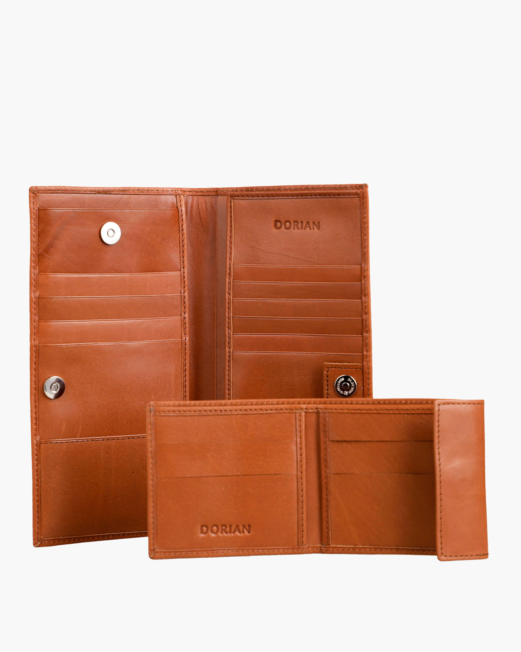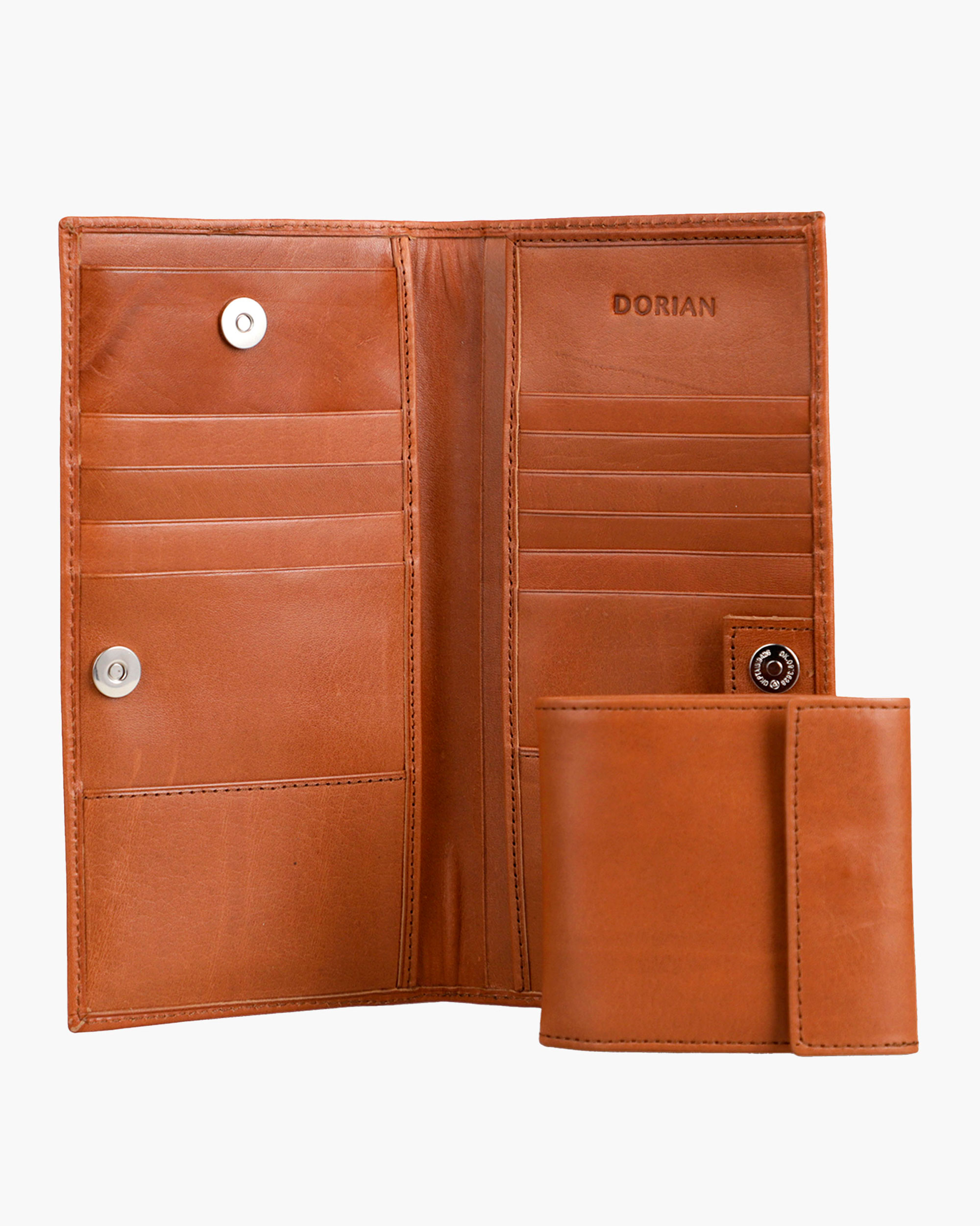 Cuero legítimo, diseño compacto y elegante, cierres imantados